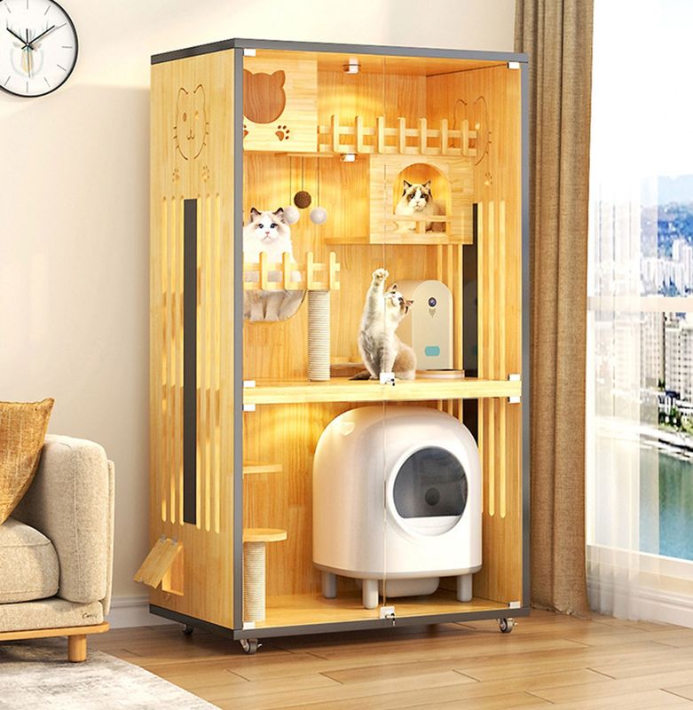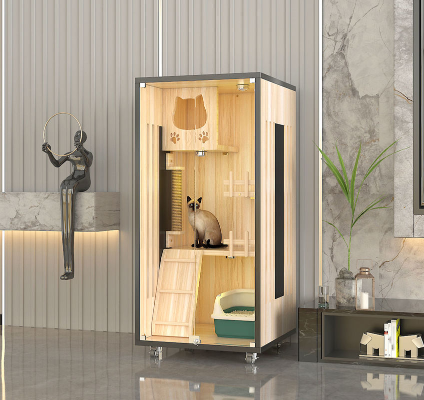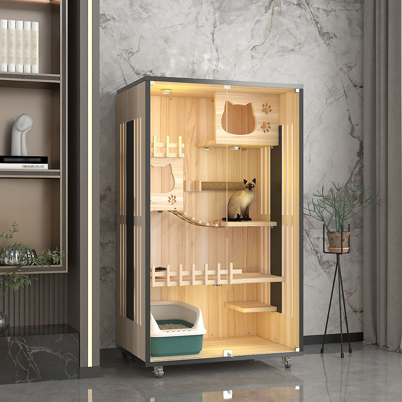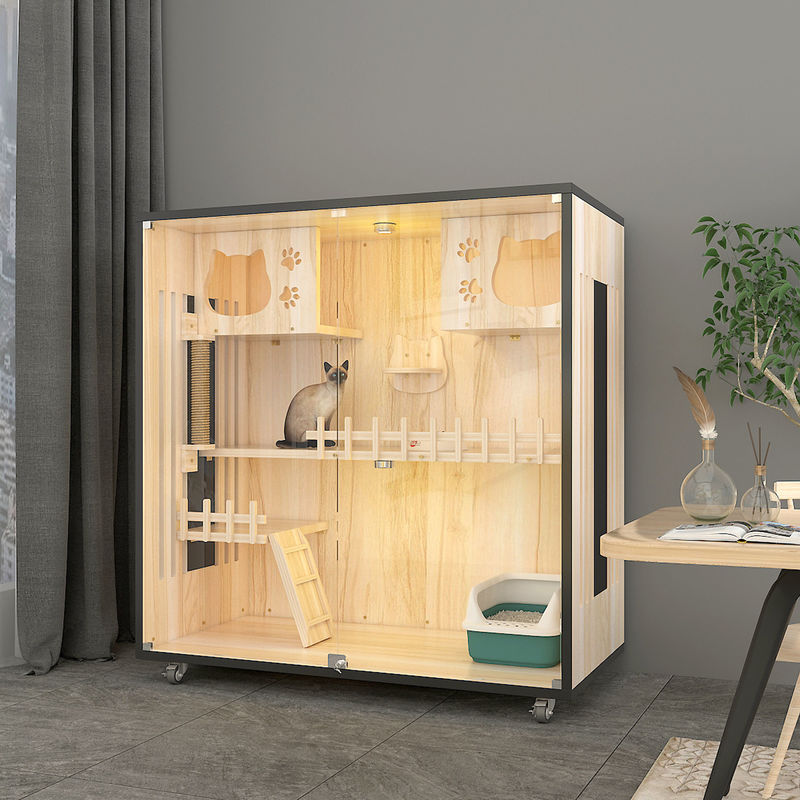 Деревянная вилла: Вилла кота основной корпус всей мебели, обычно делаемый высококачественной твердой древесины или деревянных панелей, после осторожных дизайна и обработки. Деревянная вилла обеспечивает частное и удобное жизненное пространство для котов, давая им безопасное место и для игры.