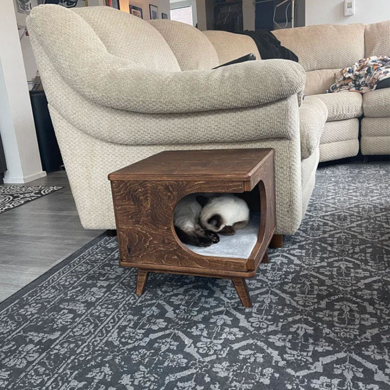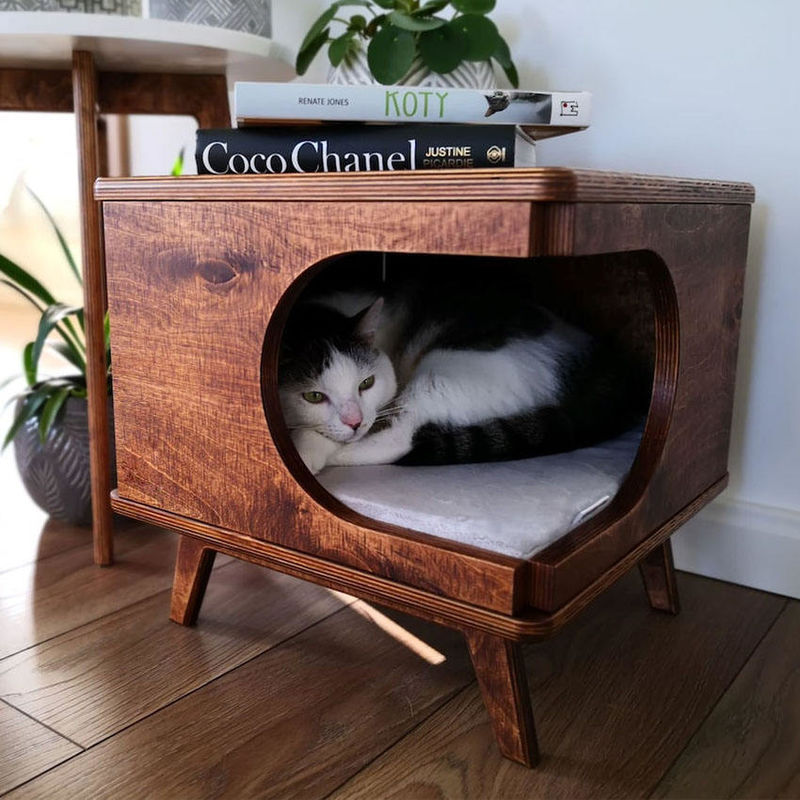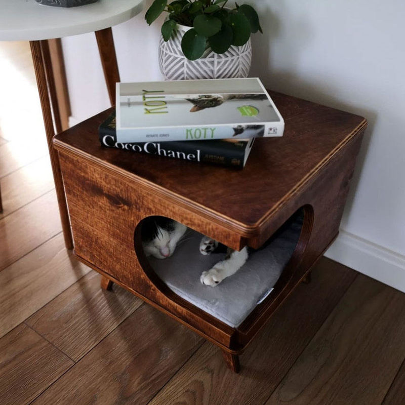 Зона любимца: Гнездо кота прикроватного столика можно использовать как часть зоны любимца для того чтобы обозначить космос их для котов, так, что коты будут чувствовать безопасными и дома.