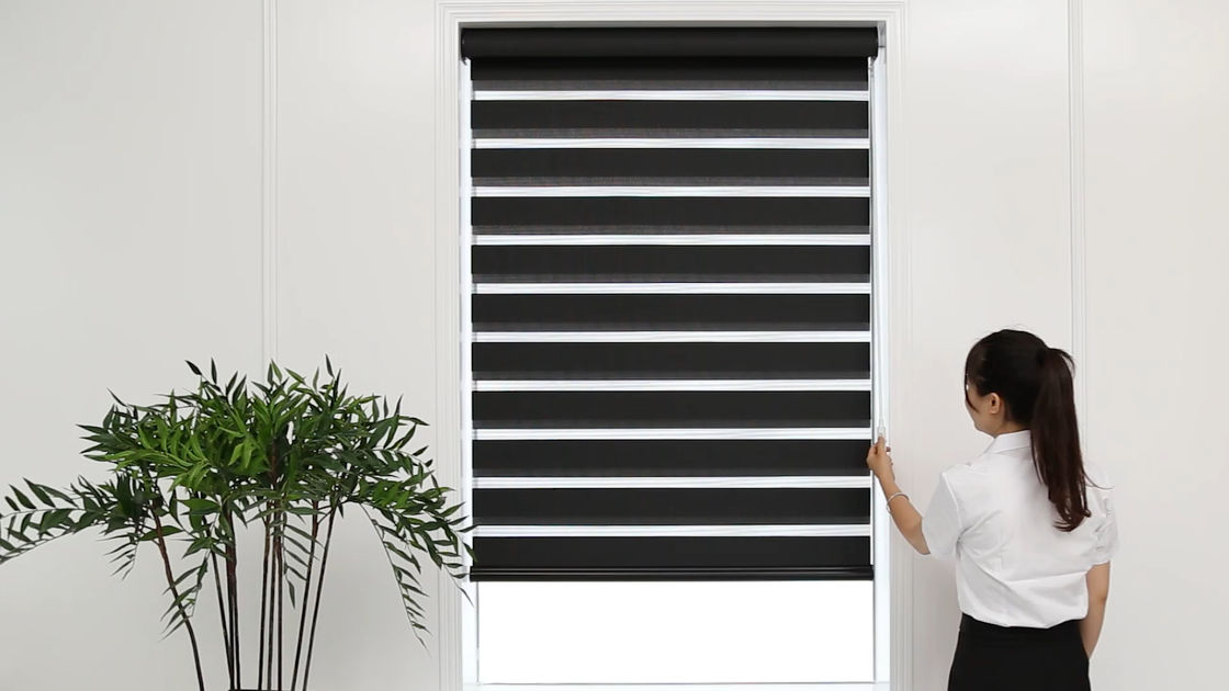 Тень зебры шторок ролика светомаскировки занавеса черной зебры шторок окна бесшнуровой слепая все время моторизованная