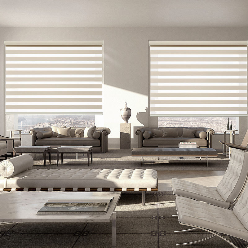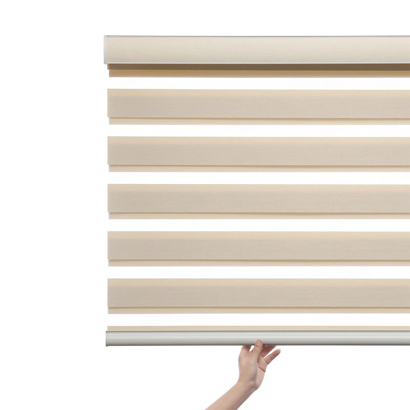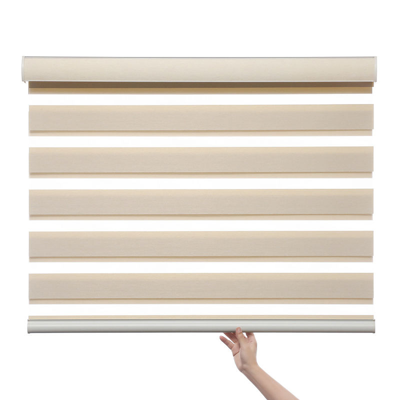 Двойные шторки: Шторки двойника управлением весны ребенка безопасные бесшнуровые используют конструкцию 2 шторок, обычно делаемую из алюминиевого сплава или пластмассы. Этот дизайн позволяет занавесам к обоим отрегулировать свет и обеспечить уединение.